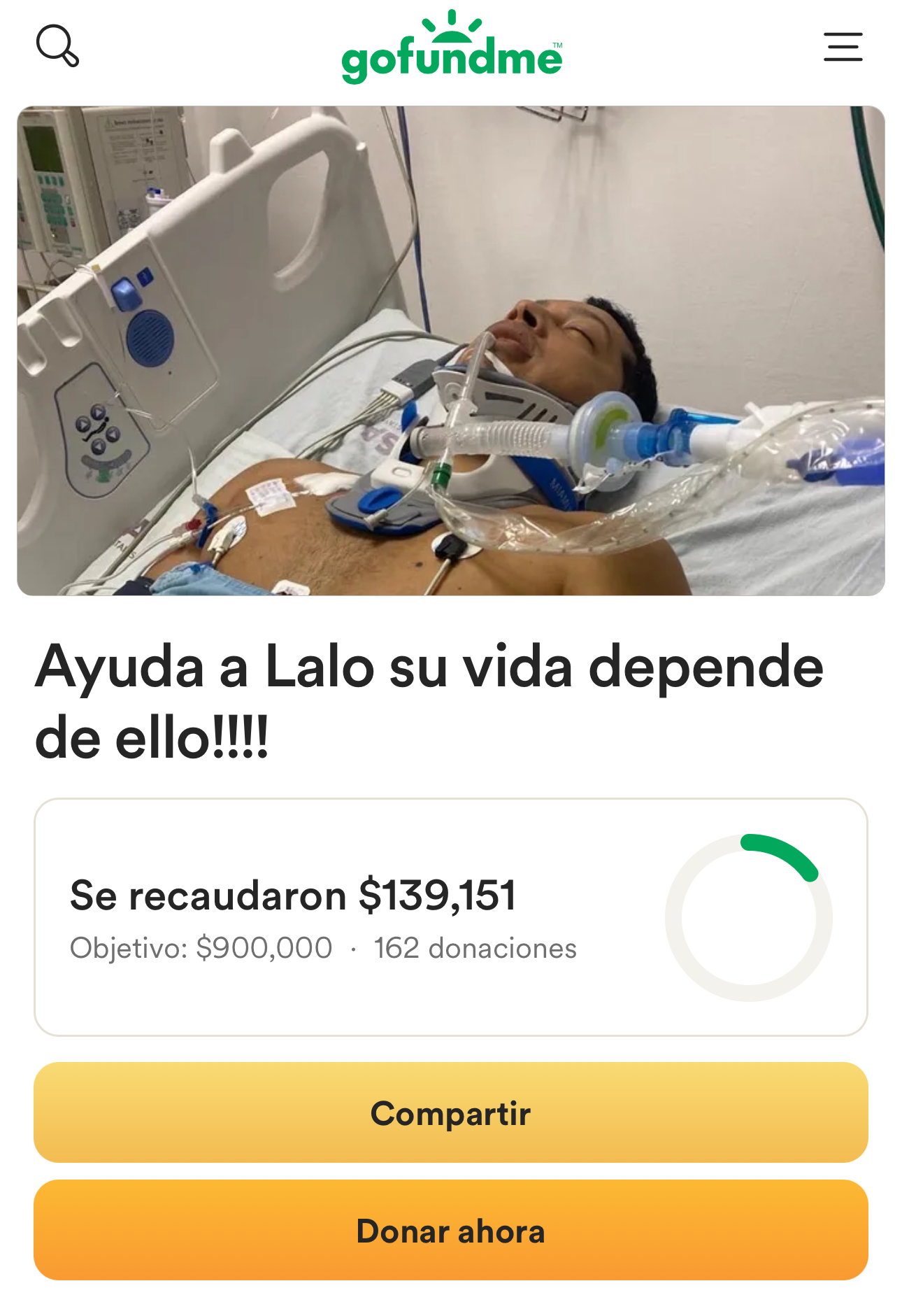 La publicación, realizada en Twitter, explica que Lalo, como es conocido el paciente, necesita más de 700 mil pesos para solventar los gastos hospitalarios, ya que su seguro no se ha hecho responsable de la situación. El mensaje incluía un enlace a la plataforma GoFundMe, donde se detallan los motivos de la colecta y el estado de salud del joven.