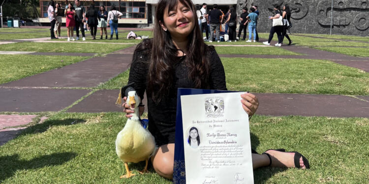 La alumna, identificada como Marilyn y graduada en la carrera de optometría, compartió el escenario con su pato, ambos luciendo un pequeño birrete, en una foto que rápidamente se convirtió en la «Foto del Día» de la UNAM, generando reacciones positivas y comentarios de admiración.
