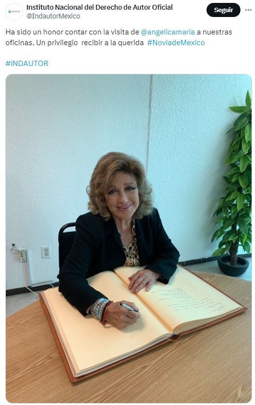 En medio de la polémica, se informó que Angélica María fue vista en el Instituto Nacional de Derechos de Autor (Indautor) el pasado 6 de septiembre. Aunque no se ha confirmado oficialmente si su visita fue para registrar el título de «La novia de México», su presencia en las oficinas del Indautor generó especulaciones sobre si la intérprete habría tomado medidas legales para proteger el uso del apodo.