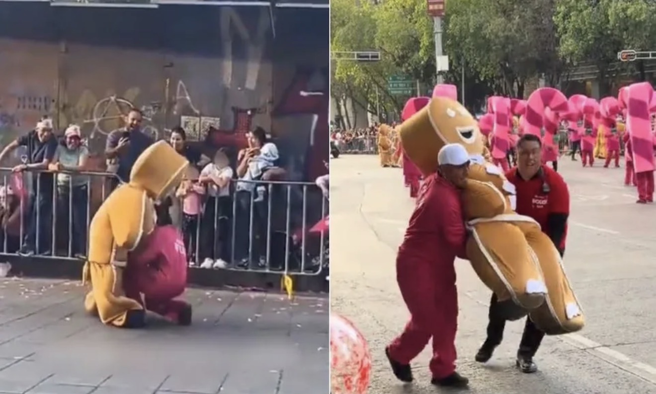 Aunque el evento transcurrió en general de forma segura, un momento llamó especialmente la atención del público y de los internautas: la caída de una botarga de galleta de jengibre, cuyo desplome quedó captado en video y rápidamente se volvió viral.