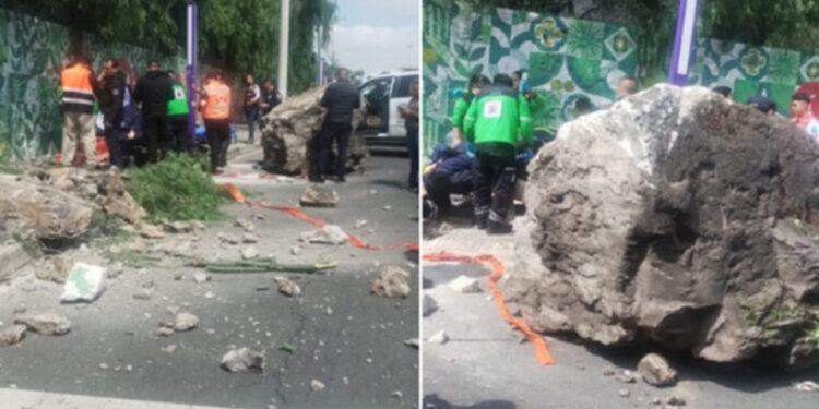La roca cayó cerca del carril confinado de la Línea 6 del Metrobús, afectando a un grupo de peregrinos provenientes de Querétaro. Según reportes preliminares, al menos una persona resultó gravemente herida y fue trasladada en ambulancia por paramédicos de Protección Civil de la GAM a un hospital cercano.