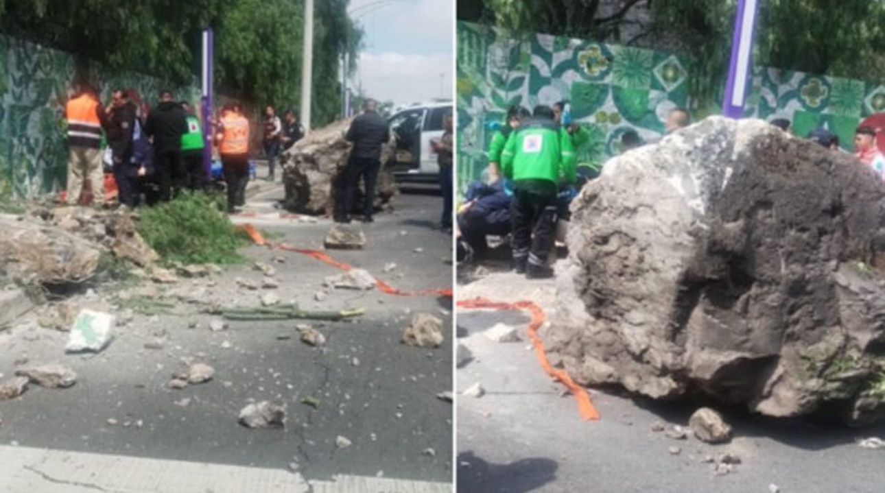 La roca cayó cerca del carril confinado de la Línea 6 del Metrobús, afectando a un grupo de peregrinos provenientes de Querétaro. Según reportes preliminares, al menos una persona resultó gravemente herida y fue trasladada en ambulancia por paramédicos de Protección Civil de la GAM a un hospital cercano.
