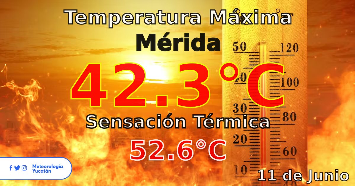 La cuenta de Meteorología Yucatán, encabezada por el meteorólogo Juan Antonio Palma Solís, informa que la «Ciudad Blanca» superó los 50 grados de sensación térmica. ¡Vaya quemazón! Además, los termómetros alcanzaron un nuevo récord de 42.3 grados, superando el anterior por 0.3 grados. ¡El calor está que arde!