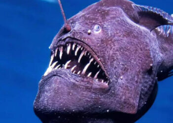 Un pez diablo negro, especie que habita en las profundidades del océano, fue captado cerca de la superficie en aguas...