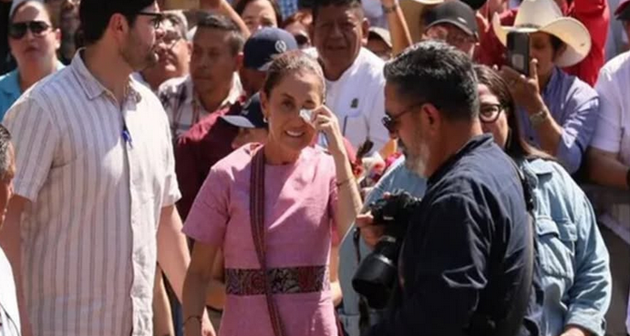 Tras el golpe, Sheinbaum se detuvo por unos instantes y utilizó un pañuelo para limpiar su ojo, que presentaba enrojecimiento y lagrimeo. El momento generó preocupación entre el equipo de logística y algunos asistentes que presenciaron la escena.