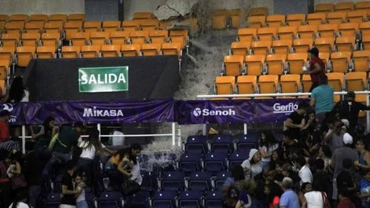 El auditorio Morelos, en donde se llevaba a cabo el mundial Sub 20 de Voleibol, una parte del techo se precipitó debido a las altas cantidades de agua.