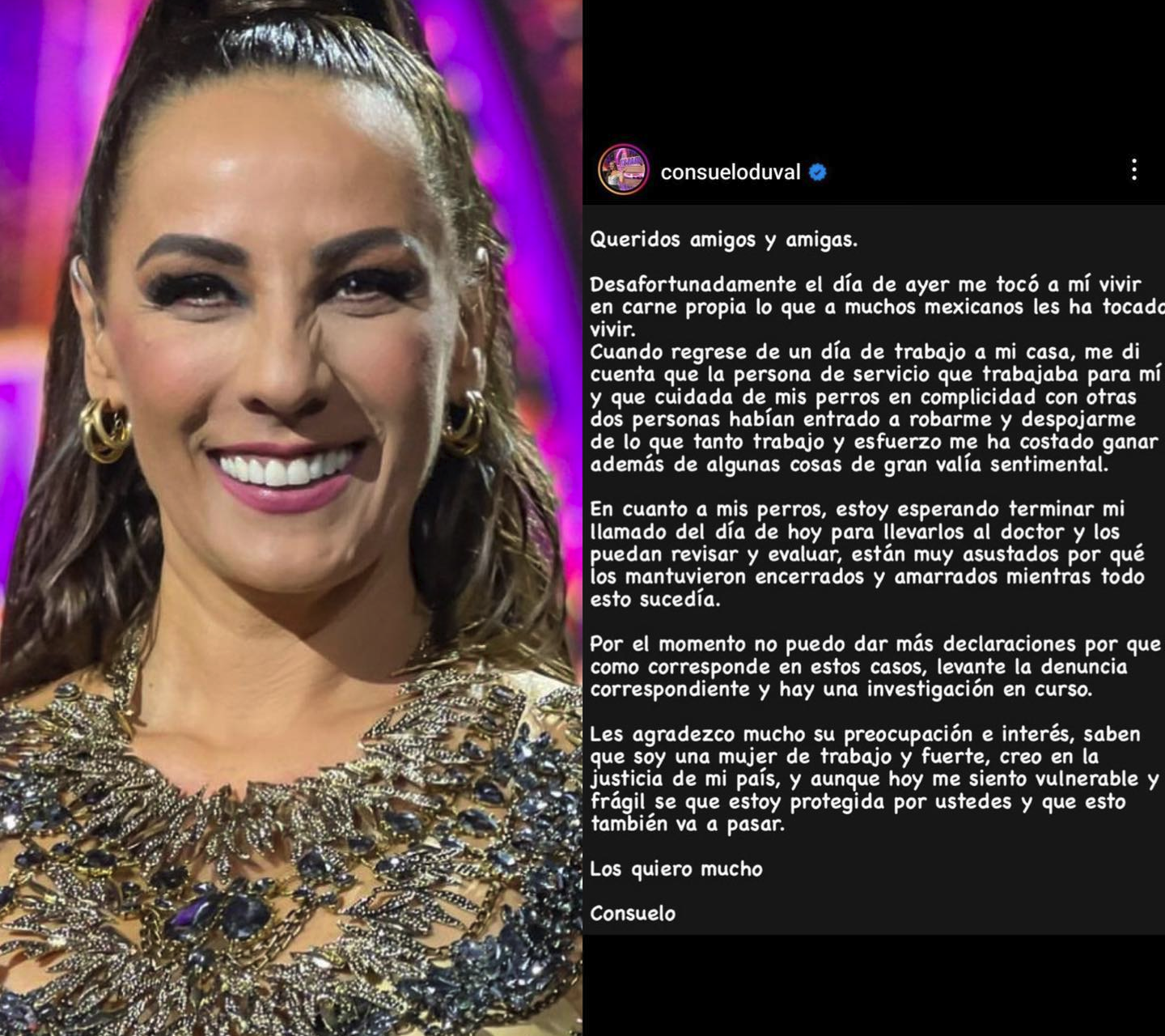 La reconocida actriz mexicana Consuelo Duval fue víctima de un robo en su residencia de una zona habitacional de lujo en la alcaldía Cuajimalpa, Ciudad de México. La Fiscalía General de Justicia (FGJ) abrió una carpeta de investigación para esclarecer los hechos.
