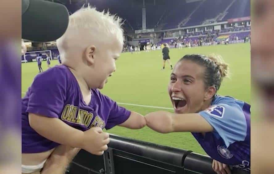 La victoria del Orlando Pride por 1-0 contra Sky Blue en Orlando, Estados Unidos, el sábado 20 de julio quedo marcado al termino del partido, durante un encuentro entre la jugadora y el pequeño fanático.