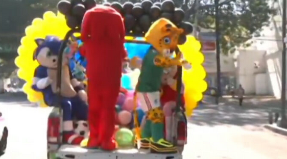 El operativo no pasó desapercibido en las calles. Algunos policías participaron usando botargas, lo que transformó el trayecto en una especie de desfile improvisado que llamó la atención de niñas y niños.