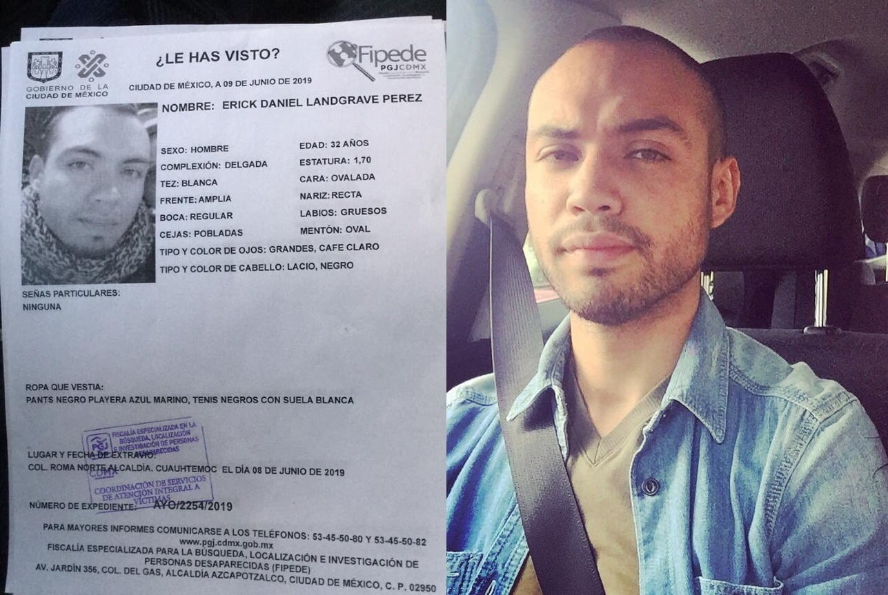 Su nombre es Erick Daniel Landgrave Pérez, tiene 32 años y fue visto por última vez el sábado 8 de junio en la colonia Roma Norte, en la alcaldía Cuauhtémoc.