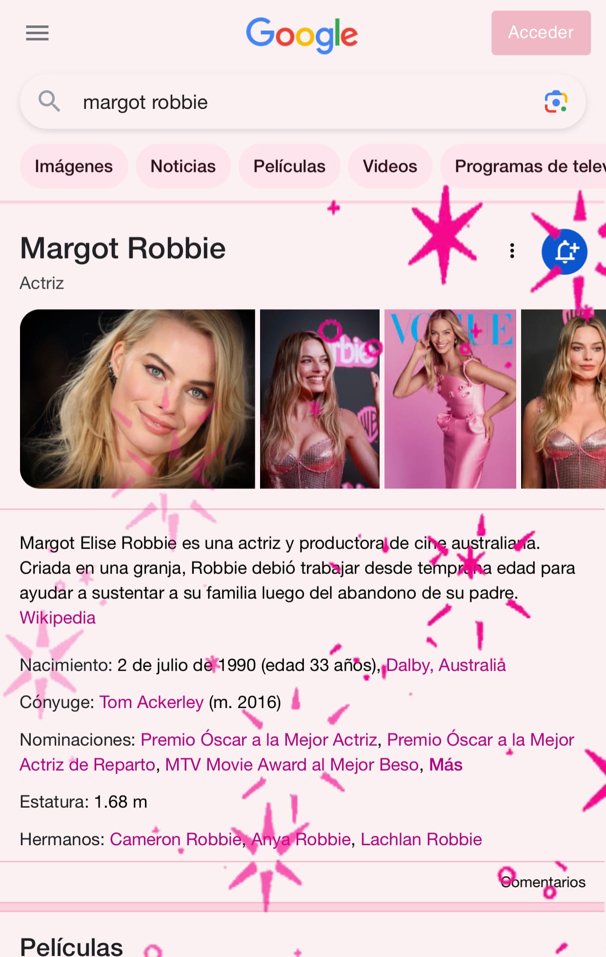 Entre estas empresas se encuentra Google, que ha decidido unirse a la celebración del estreno con una función especial en su buscador en línea. Recientemente, se ha difundido en redes sociales que al escribir el nombre de Margot Robbie, Ryan Gosling e incluso el de Greta Gerwig, directora de la película, en el buscador de Google, los usuarios se llevarán una agradable sorpresa.