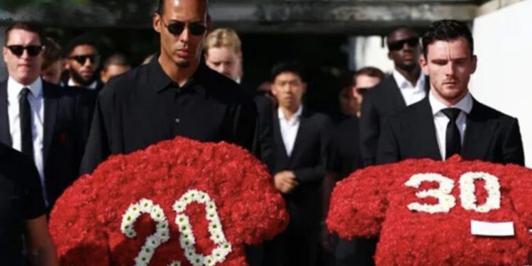 Familiares, compañeros de selección y jugadores del Liverpool rindieron homenaje a los hermanos fallecidos en el accidente de Zamora, durante una ceremonia en su ciudad natal, Gondomar.