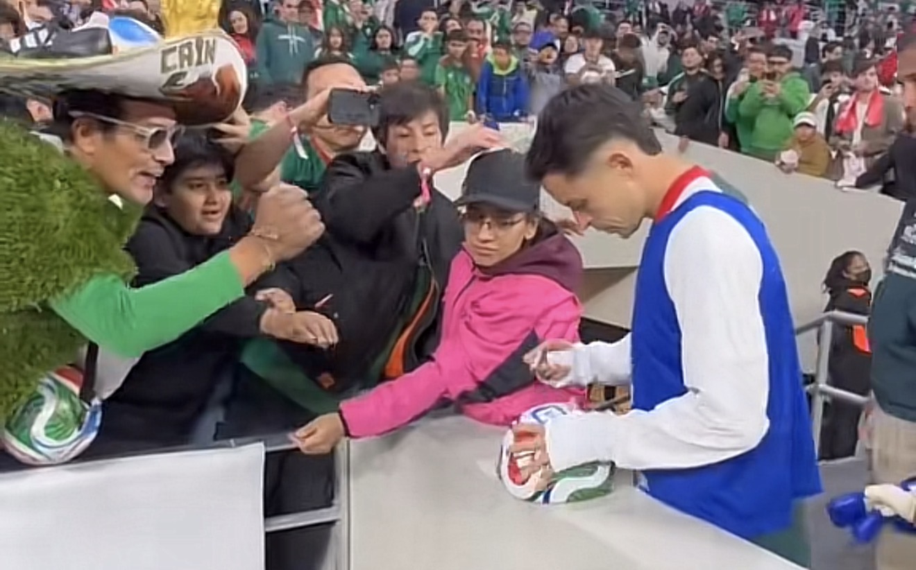 Sin embargo, la situación cambió cuando un aficionado le arrebató el plumón mientras atendía a otros seguidores, lo que generó sorpresa en el jugador y le impidió continuar con la firma de autógrafos.