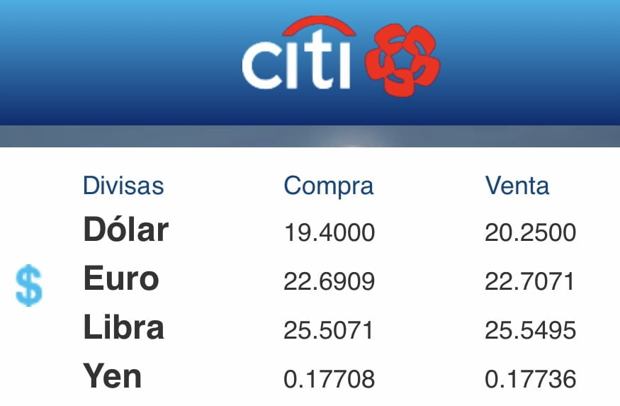 Mientras tanto, en el banco Citibanamex, el dólar se vende en 20.25 pesos.
