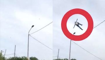 La historia real de este video, es la de un hombre que se sostiene de unos cables de alta tensión en el que se mantuvo durante unos segundos ante la mirada de la gente.
