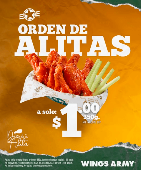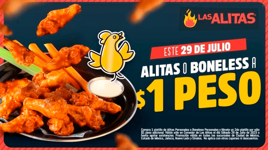 Tu segunda orden de alitas por $1