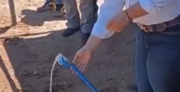 El proyecto fue anunciado como una obra relevante para mejorar el acceso al agua en comunidades de la región. Sin embargo, durante la demostración pública, la llave instalada apenas dejó salir un pequeño chorro, lo que generó dudas sobre su funcionamiento.