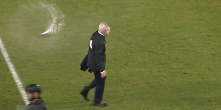 Al final del partido, la situación se desbordó en las tribunas cuando algunos aficionados comenzaron a lanzar botellas de lata hacia la cancha, generando un momento de tensión. Uno de estos objetos impactó en la cabeza del técnico mexicano, Javier Aguirre, provocándole una herida que le hizo sangrar en la frente.