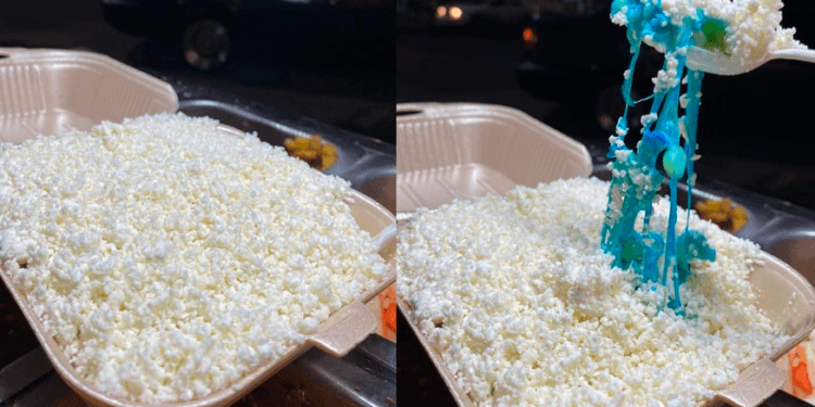 El ingenioso método de revelación consiste en un plato de elotes, conocido en algunos lugares como «chascas». El color que se encuentra en el interior de este delicioso postre revelará si están esperando una niña o un niño. En este caso, al casar la cuchara con el plato de elotes, se ve claramente cómo el color azul emerge, indicando que están a punto de dar la bienvenida a un niño.