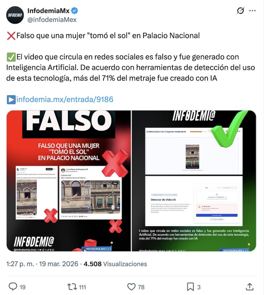 Con el paso de los días, distintos análisis confirmaron que el video era auténtico. La versión oficial quedó sin sustento y, finalmente, el 30 de marzo, la presidenta Claudia Sheinbaum reconoció que el contenido era real. El caso evidenció una verificación apresurada y sin sustento técnico sólido.