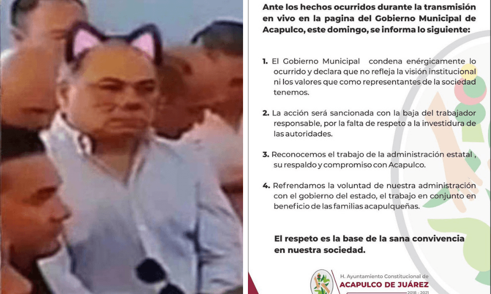 La ex community manager del Ayuntamiento de Acapulco y ex candidata a diputada federal, Iris Paola Gómez, fue despedida de su empleo después de que durante una transmisión de Facebook, le pusiera un filtro de orejas de gatito al gobernador de Guerrero, Héctor Astudillo.