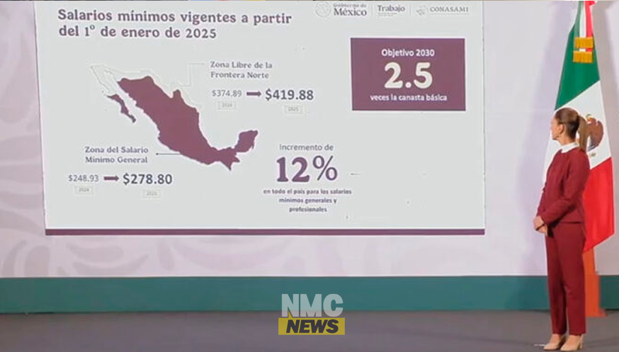 En la conferencia matutina del miércoles 4 de diciembre, la presidenta Claudia Sheinbaum Pardo anunció un acuerdo entre el Gobierno y el sector empresarial para aumentar el salario mínimo a partir del 1 de enero de 2025. El ajuste, aprobado por la Comisión Nacional de los Salarios Mínimos (CONASAMI), beneficiará tanto a los trabajadores de la zona general como a los de la zona libre de la frontera norte.