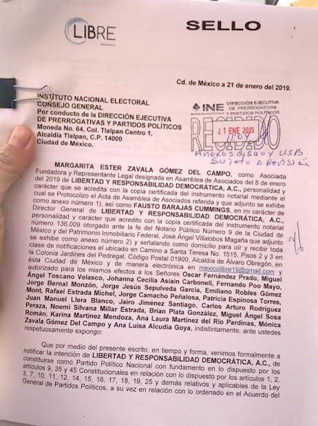Este lunes, Margarita Zavala registró su asociación Libertad y Responsabilidad Democrática (Libre) ante el INE para convertirla en un partido político.