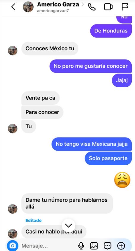 Estefany Mendoza, una tiktoker originaria de Honduras, publicó varias pruebas que, según ella, demuestran que Garza coqueteó con ella. En las capturas compartidas, se puede ver cómo Américo invita a Estefany a conocer México, a pesar de que ella vive en Honduras. Además, Garza le dice: “Me encantas, no me importa que estés chiquita”.