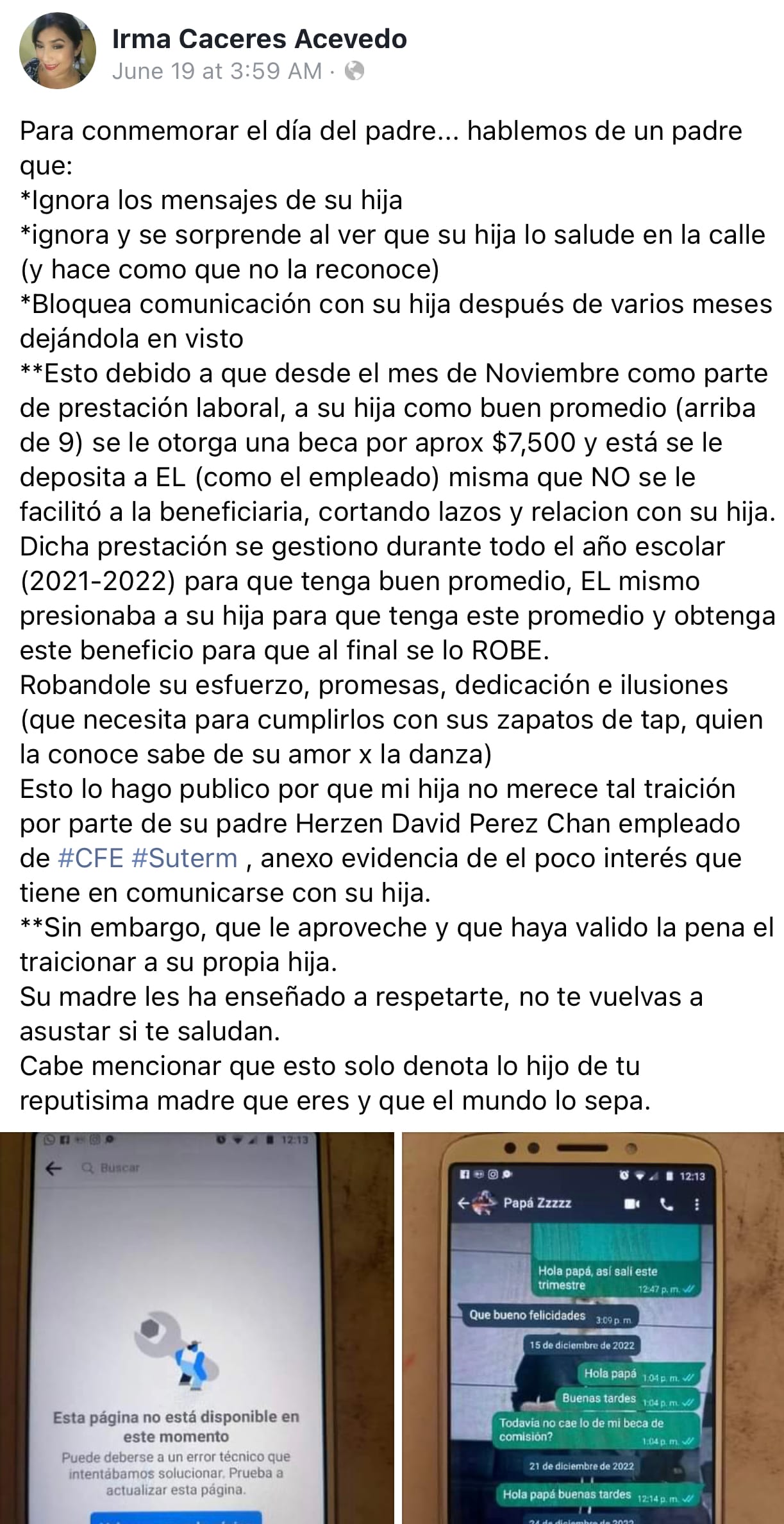 La situación se agrava al descubrir que esta conducta del padre está relacionada con una beca otorgada a la menor por mantener un excelente promedio académico. La beca, valorada en aproximadamente 7 mil 500 pesos, fue depositada en la cuenta del padre como parte de una prestación laboral, pero nunca fue entregada a la beneficiaria. El padre cortó toda comunicación con su hija, dejándola sin el reconocimiento y el apoyo económico al que tenía derecho.