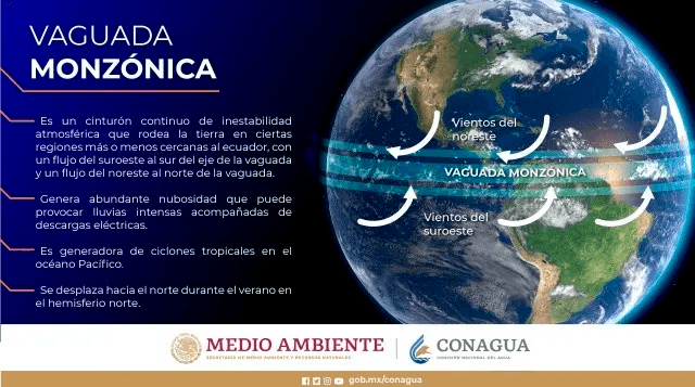 Uno de los efectos más notables de la vaguada monzónica es la generación de ciclones tropicales en el Océano Pacífico, lo que la convierte en un fenómeno meteorológico importante que requiere seguimiento constante por parte de las autoridades y la población.