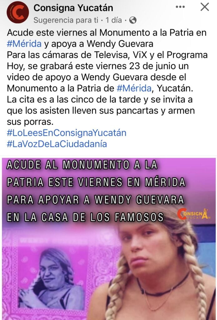 ¡El fervor se desata en Mérida, Yucatán! A través de Facebook, se ha convocado a una marcha sin precedentes para mostrar un apoyo masivo a Wendy Guevara en su participación en el reality show “La Casa de los Famosos”. Los yucatecos se han unido en una demostración de fuerza y respaldo hacia la popular influencer.