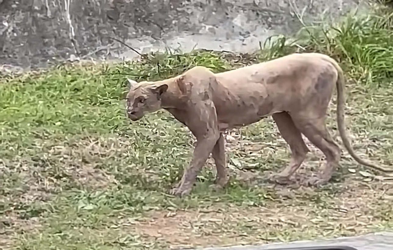 En las imágenes, difundidas por vecinos a través de redes sociales, se observa al felino de gran tamaño caminando por la calle Montaña de Encinos, cerca del número 31311. Posteriormente, otro video muestra al mismo ejemplar llevando lo que parece ser un pequeño gato entre sus fauces.