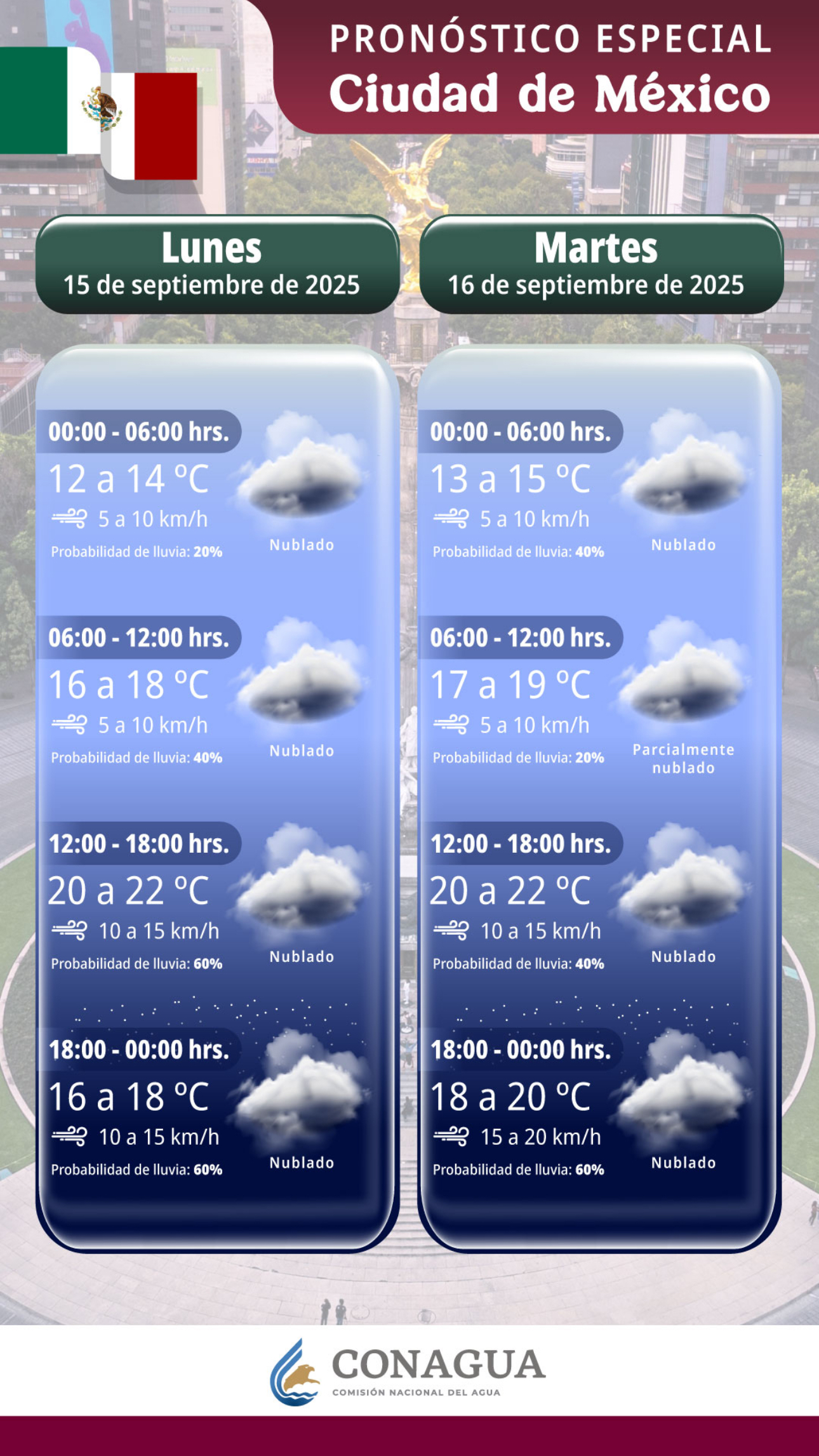 La Secretaría de Gestión Integral de Riesgos y Protección Civil (SGIRPC) dio a conocer el pronóstico del clima para las celebraciones de las fiestas patrias en la Ciudad de México, con condiciones que podrían sorprender a quienes salgan a conmemorar el Grito de Independencia.