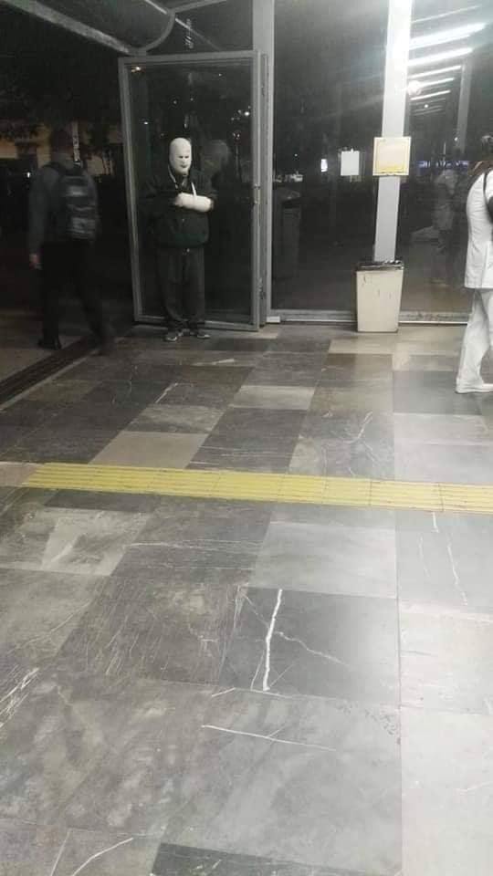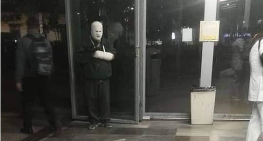 El sujeto con el rostro y las manos envueltas en vendas, no logró engañar a varias personas que lo identificaron como un fraude.