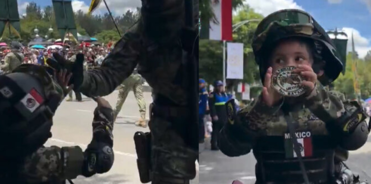 El momento ocurrió este 16 de septiembre en el corazón de Ciudad de México, donde miles de ciudadanos se congregaron para presenciar la celebración. Entre la disciplina de las Fuerzas Armadas, un elemento —aparentemente de Fuerzas Especiales— se detuvo unos segundos, retiró una insignia de su uniforme y se la entregó a la pequeña.