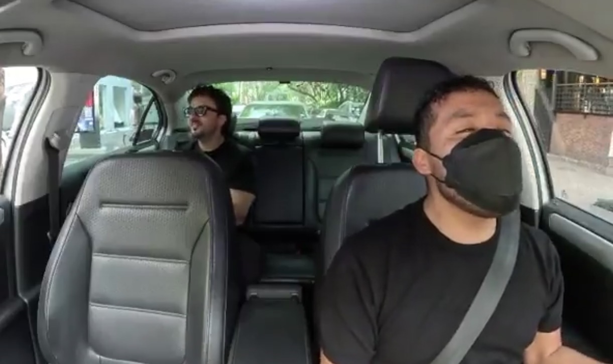Entre risas, ambos comenzaron a cantar el tema, generando un ambiente de cercanía y espontaneidad que rápidamente llamó la atención. El chofer incluso aprovechó para avisar a otras personas que llevaba al cantante, en un gesto lleno de emoción.