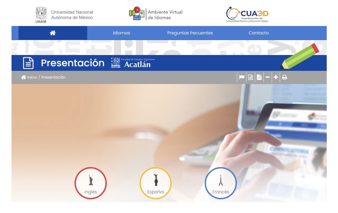 Los cursos están disponibles a través del Ambiente Virtual de Idiomas (AVI), desarrollado por la CUAIEED, enfocado en la educación abierta y a distancia.