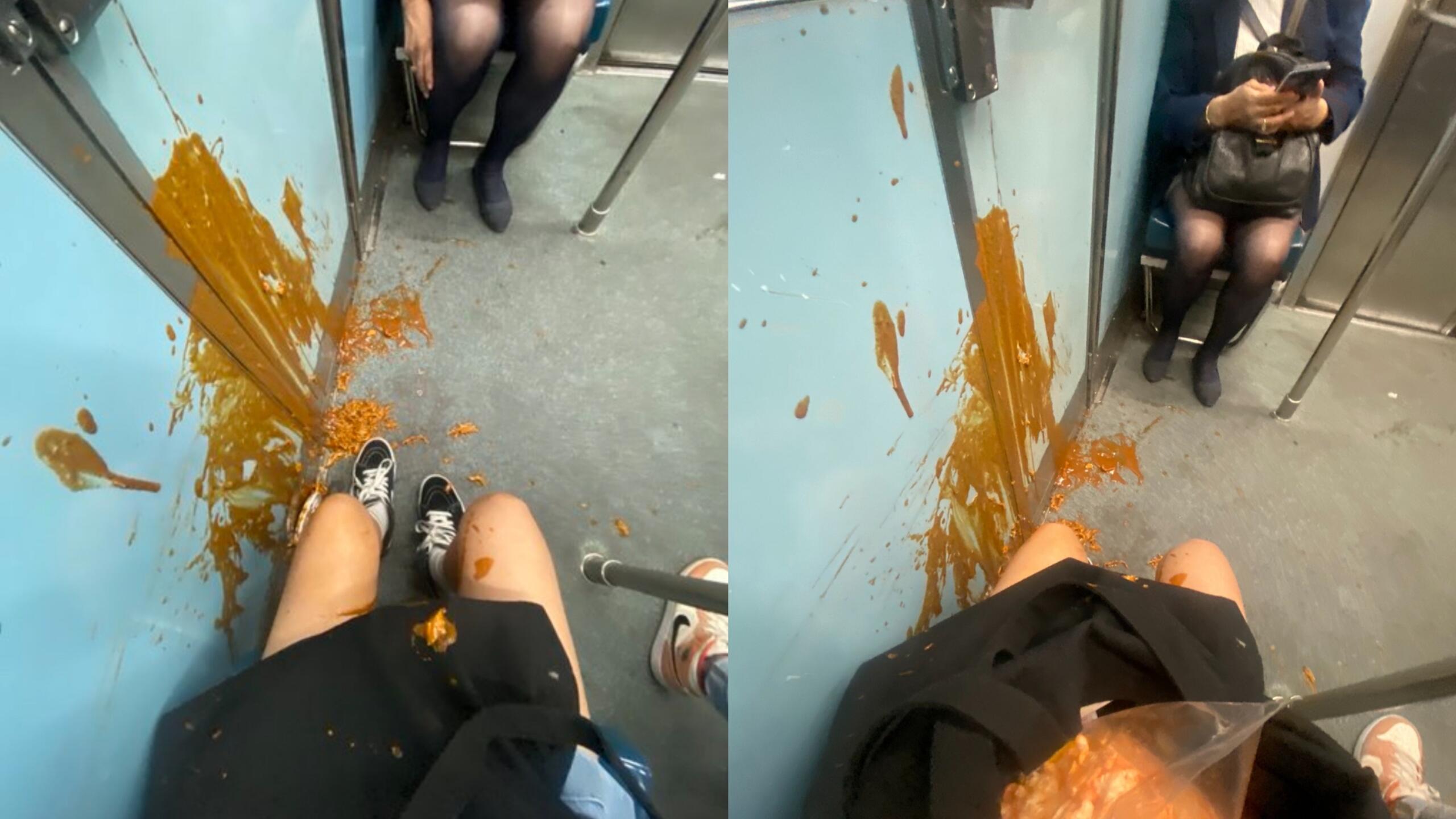 En las fotografías compartidas, se puede observar el vagón del Metro cubierto de mole, con la usuaria visiblemente afectada por la inesperada situación. El tupper, al parecer, no resistió el impacto de la caída y provocó una explosión culinaria que dejó su contenido esparcido por el tren.