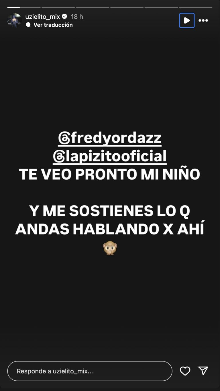 Lapizito respondió a los ataques, intentando calmar la situación. Aseguró que no tenía intenciones de hablar mal de Uzielito y que estaba dispuesto a conversar en persona. “Nunca hablé mal de usted, sin problema, un día lo miro para platicar de frente”, señaló.