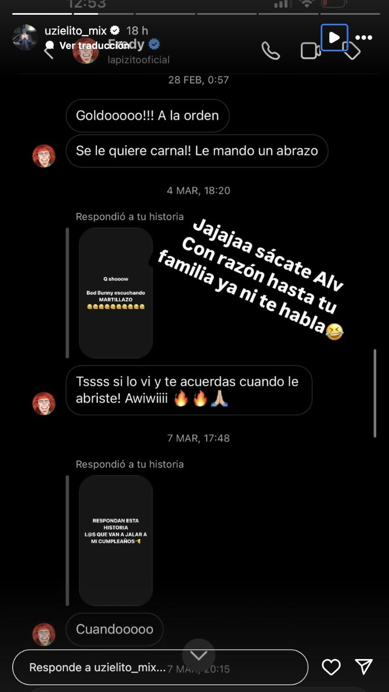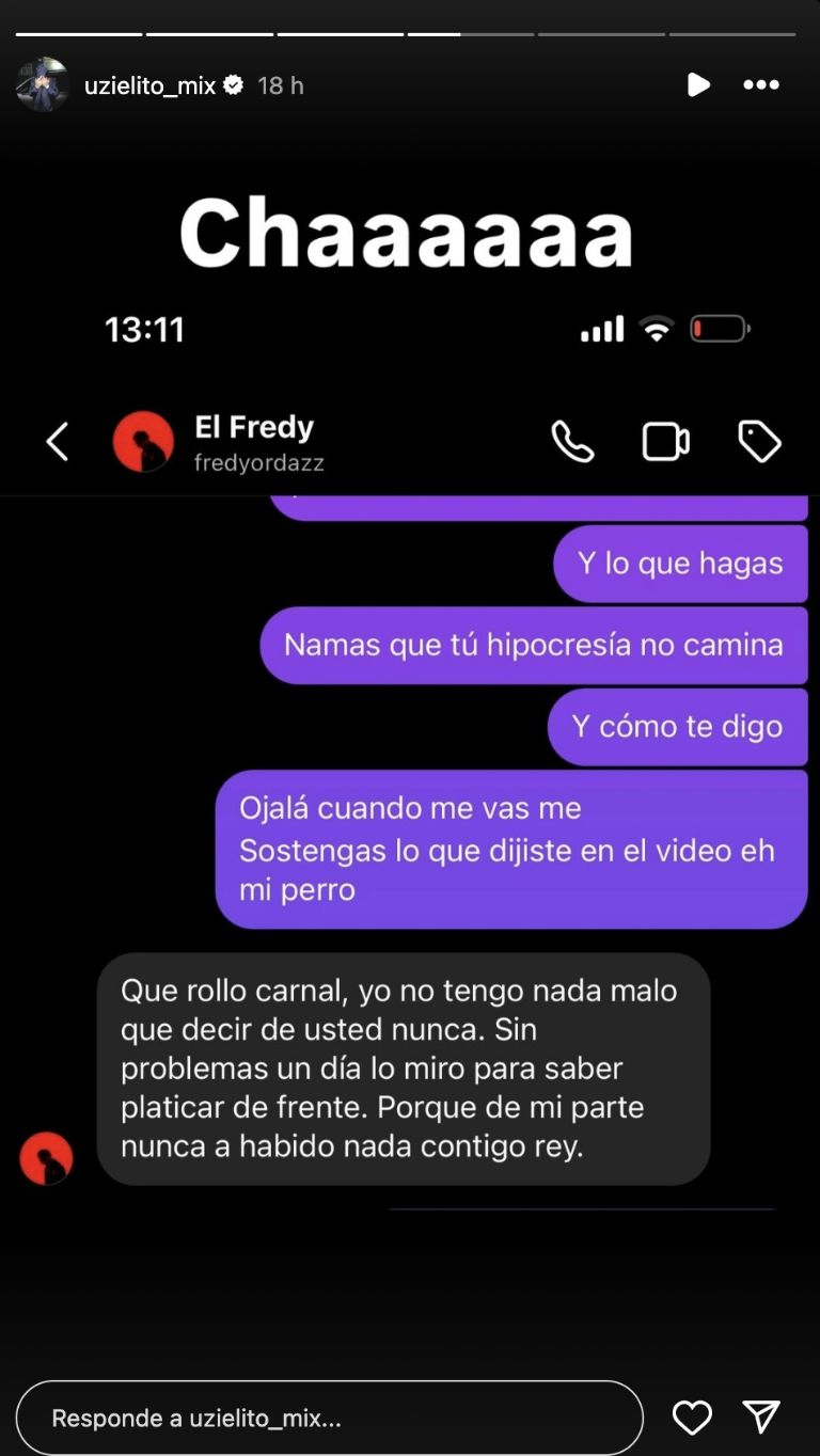 La reacción de Uzielito Mix no se hizo esperar. A través de su cuenta de Instagram, el productor musical retó a Lapizito a sostener sus palabras cara a cara. “Ojalá cuando me veas me sostengas lo que dijiste en el video, mi p3rro”, escribió Uzielito Mix. Además, Uzielito lo acusó de ser hipócrita y contradictorio, compartiendo mensajes en los que Lapizito lo había elogiado en privado. “Sácate alv, con razón, hasta tu familia ya ni te habla”, comentó Uzielito Mix.