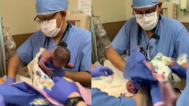 El padre de la pequeña, Derrick Rodgers, que grababa el nacimiento de sus hijas gemelas, Madison y Morgan, captó el momento exacto en el que el médico que atendía el parto dejó caer a la pequeña.