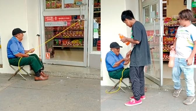 El video, que se ha viralizado en la plataforma TikTok, muestra a un hombre de avanzada edad sentado en una silla frente a la entrada de una tienda Oxxo. Su ingeniosa estrategia consiste en ofrecer su ayuda a los clientes para salir de la tienda, a cambio de recibir monedas como recompensa por su servicio.