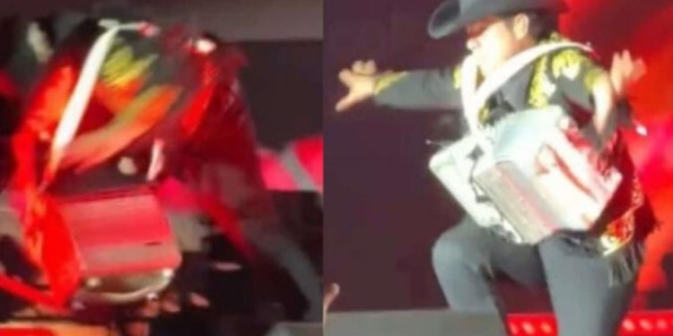 El cantante de regional mexicano demostró su profesionalismo y sentido del humor al continuar su show tras tropezar en el escenario durante su «Vivo Tour»