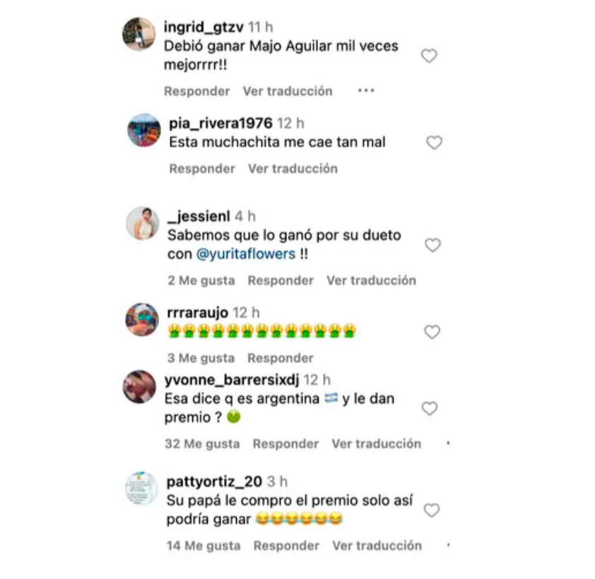 En las redes sociales del evento, Ángela Aguilar fue blanco de numerosos comentarios críticos. Algunos usuarios cuestionaron si realmente merecía el premio, sugiriendo que fue gracias a su colaboración con Yuridia o incluso atribuyéndolo a la influencia de su padre en la industria musical.