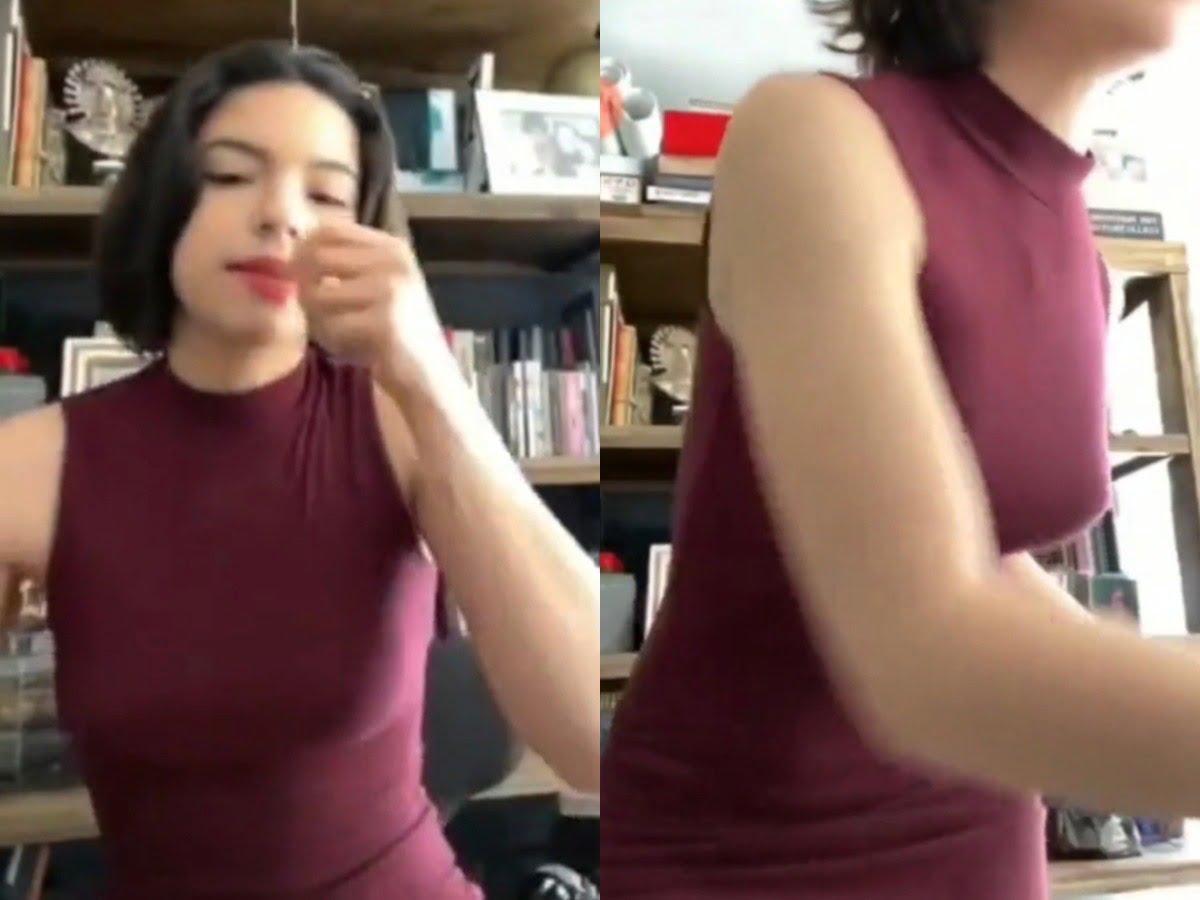 En redes sociales circula un video en el que se puede ver a Ángela Aguilar luciendo un entallado vestido color guinda durante una transmisión en vivo.