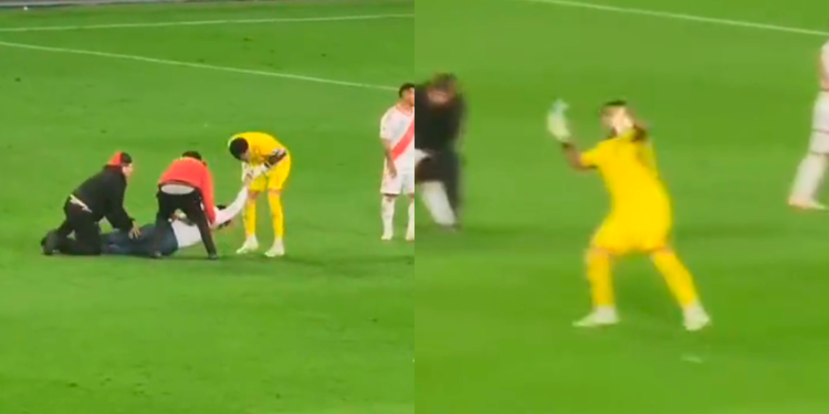 En un primer momento, un adolescente logró acercarse a Messi antes de ser retirado por los guardias de seguridad. Sin embargo, otro seguidor intentó hacer lo mismo, pero esta vez el portero peruano Pedro Gallese intervino.
