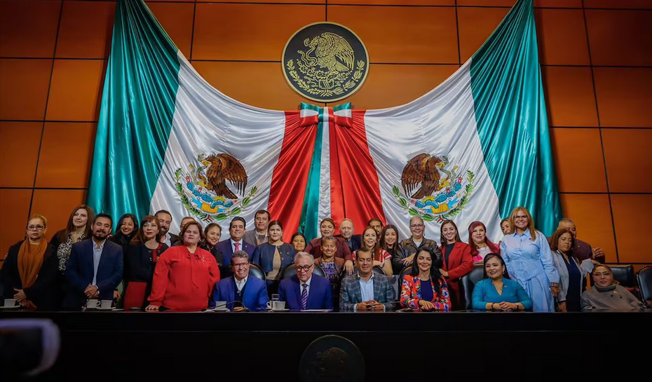 Al finalizar el evento, Rubén Rocha Moya se tomó una fotografía con líderes de la bancada morenista, entre ellos Ricardo Monreal y Sergio Gutiérrez Luna.