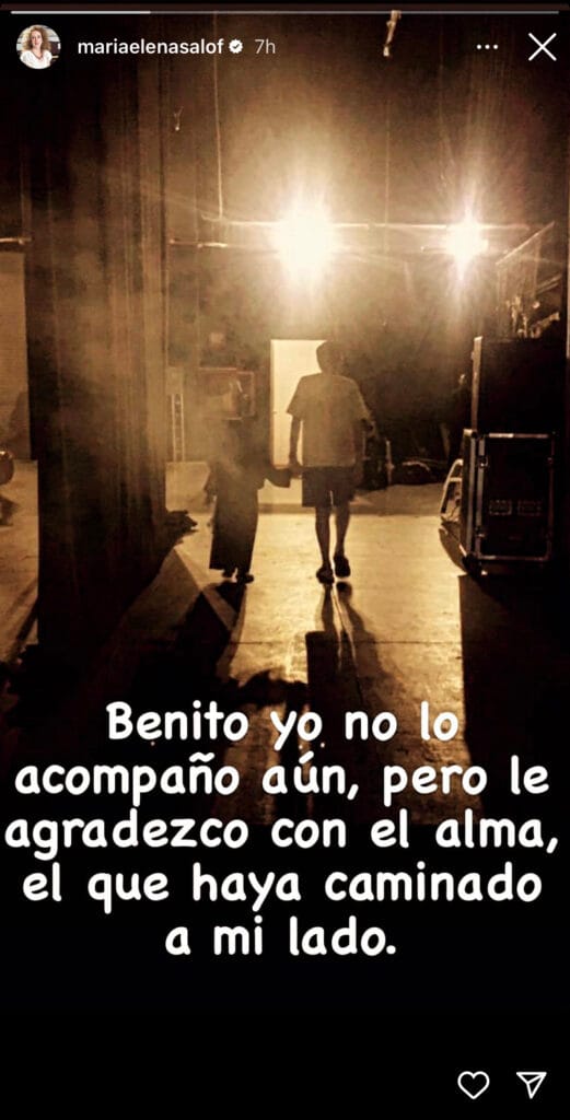 En su mensaje, la Güereja escribió: «Benito, yo no lo acompaño aún, pero le agradezco con el alma el que haya caminado a mi lado». Estas palabras reflejan el cariño y la gratitud que María Elena Saldaña siente hacia su compañero de actuación.