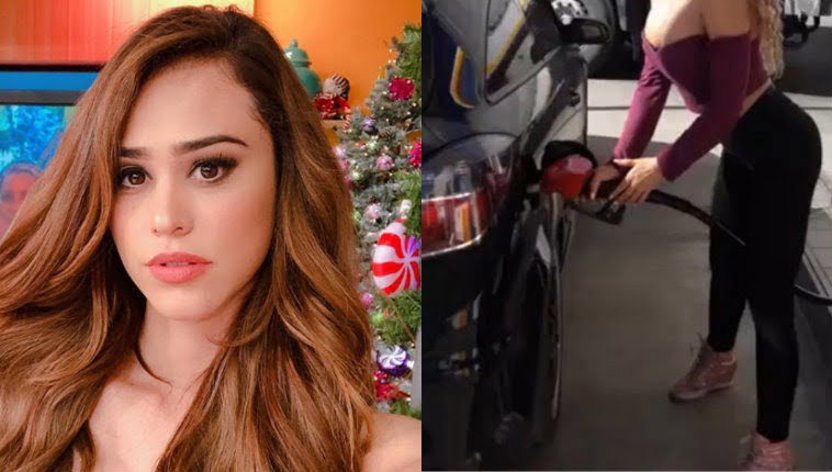 La conductora, famosa por sus curvas, usó la aplicación Instagram para compartir su sufrimiento con sus seguidores al momento en el que trataba de ponerle gasolina a su automóvil.