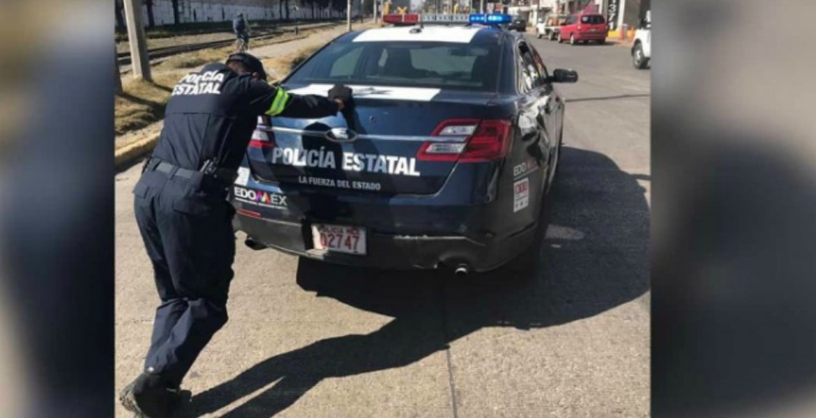 Los hechos ocurrieron en Toluca, Estado de México, en donde el desabasto de combustible llevó a dos policías a empujar su unidad para tratar de llegar a una gasolinera.